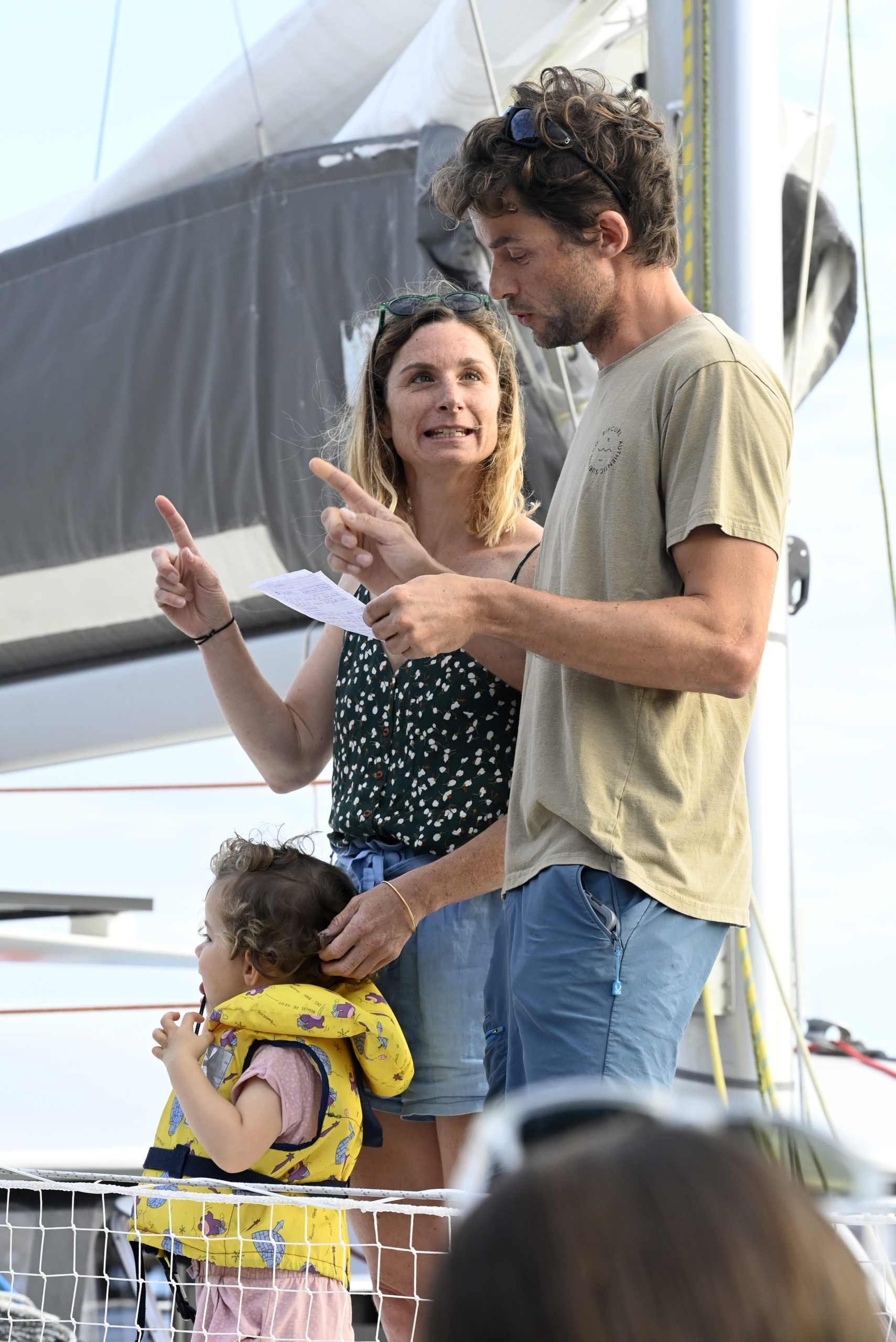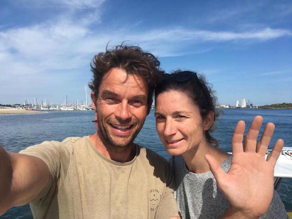 Nous avons abordé la question des quarts, point important avec nos deux pitchounes à bord, notamment en cas de première étape mouvementée. Coté équipage, nous serons donc cinq adultes et deux enfants pour cette étape. Gwénolé et Anne-Laure, les armateurs ;-).  Bruno, qui a une très grande expérience en navigation croisière. Il est en outre mécanicien et a une bonne connaissance des différents systèmes à bord puisqu’il a suivi le chantier de rénovation aux cotés de Gwénolé, durant tout l’hiver. Il y a également Thibaut et Joanne, les « jeunes » du bord. ;-). Dès le premier contact, nous avons immédiatement sympathisé. Pour l’anecdote, Joanne et Thibaut sont venus de La Rochelle à bicyclette au mois d’aout pour nous aider dans la dernière ligne droite avant la mise à l’eau. Les compétences en menuiserie de Joanne  ainsi que celles de Thibaut en sa qualité d’ingénieur ont été particulièrement appréciées.