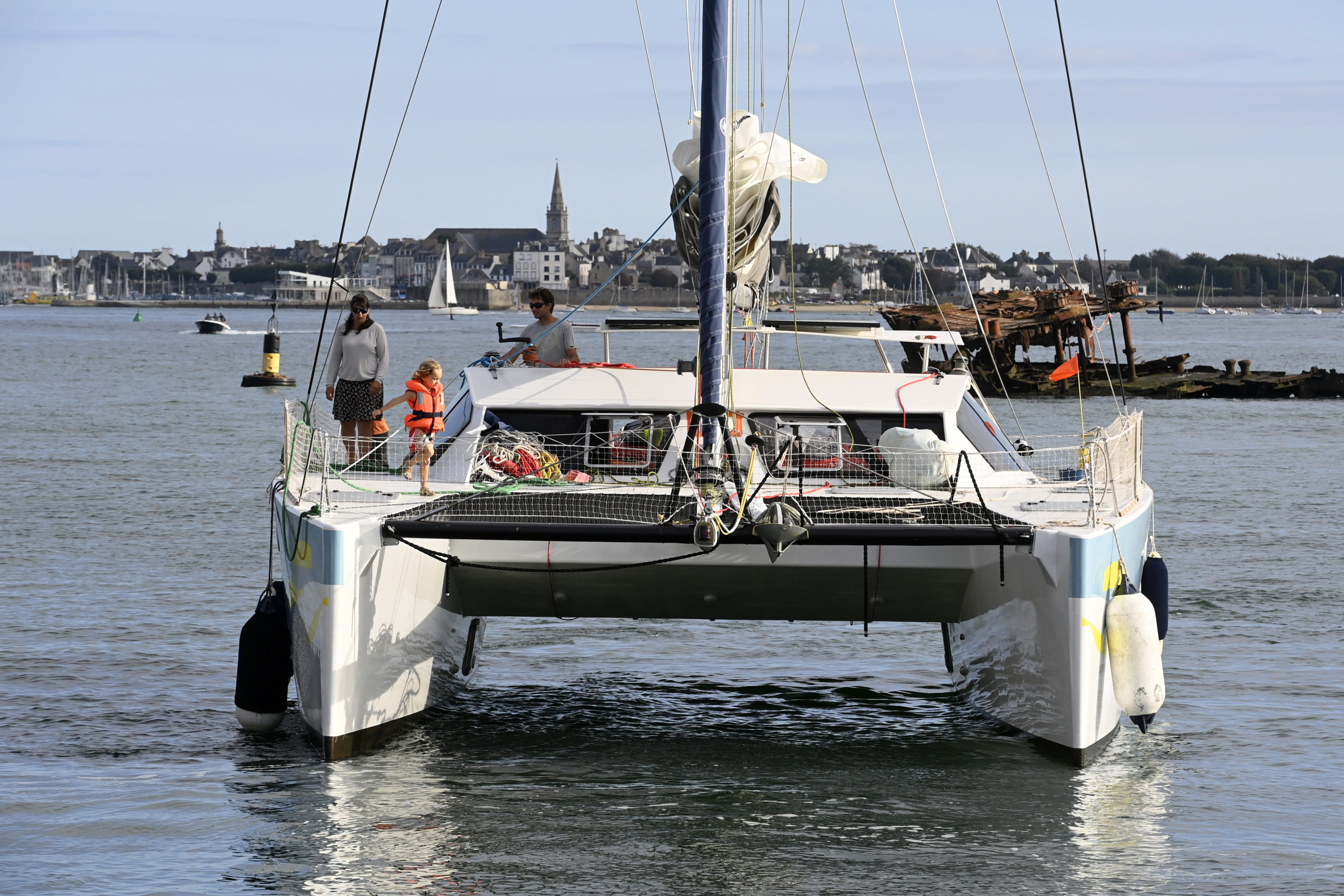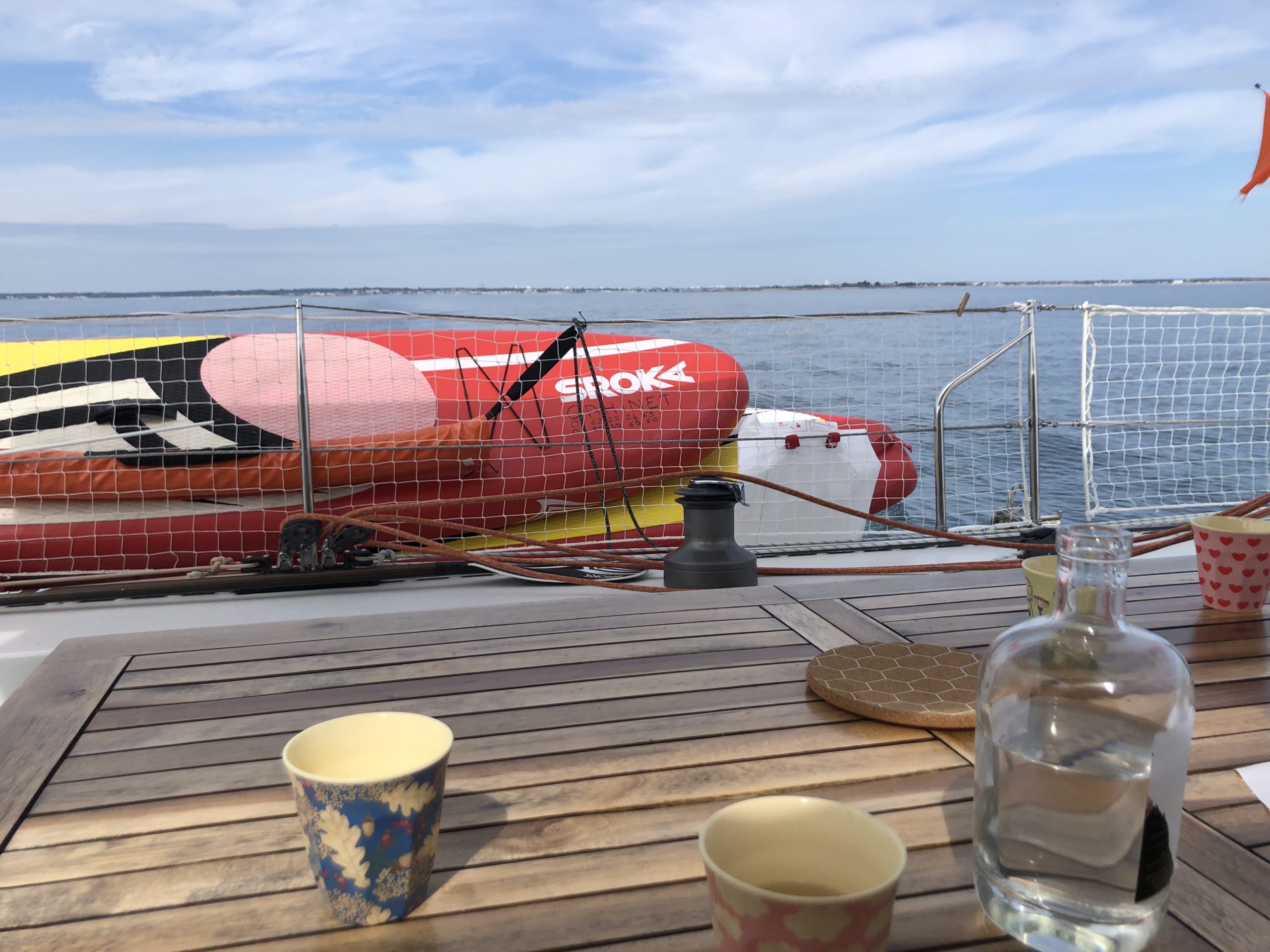 Mercredi matin, nous avons quitté la maison des parents de Gwénolé, le coeur un peu lourd. Puis quelques heures plus tard, ce fut l’heure de larguer les amarres du ponton de la Trinité-sur-mer ; une grande vague d’émotions nous a pris à la gorge. On se dit « c’est bizarre la vie, on fait des enfants, on les regarde grandir et puis un jour, ils partent ! On souhaite leur bonheur avant tout, mais quand même, cela doit être dur ! ».