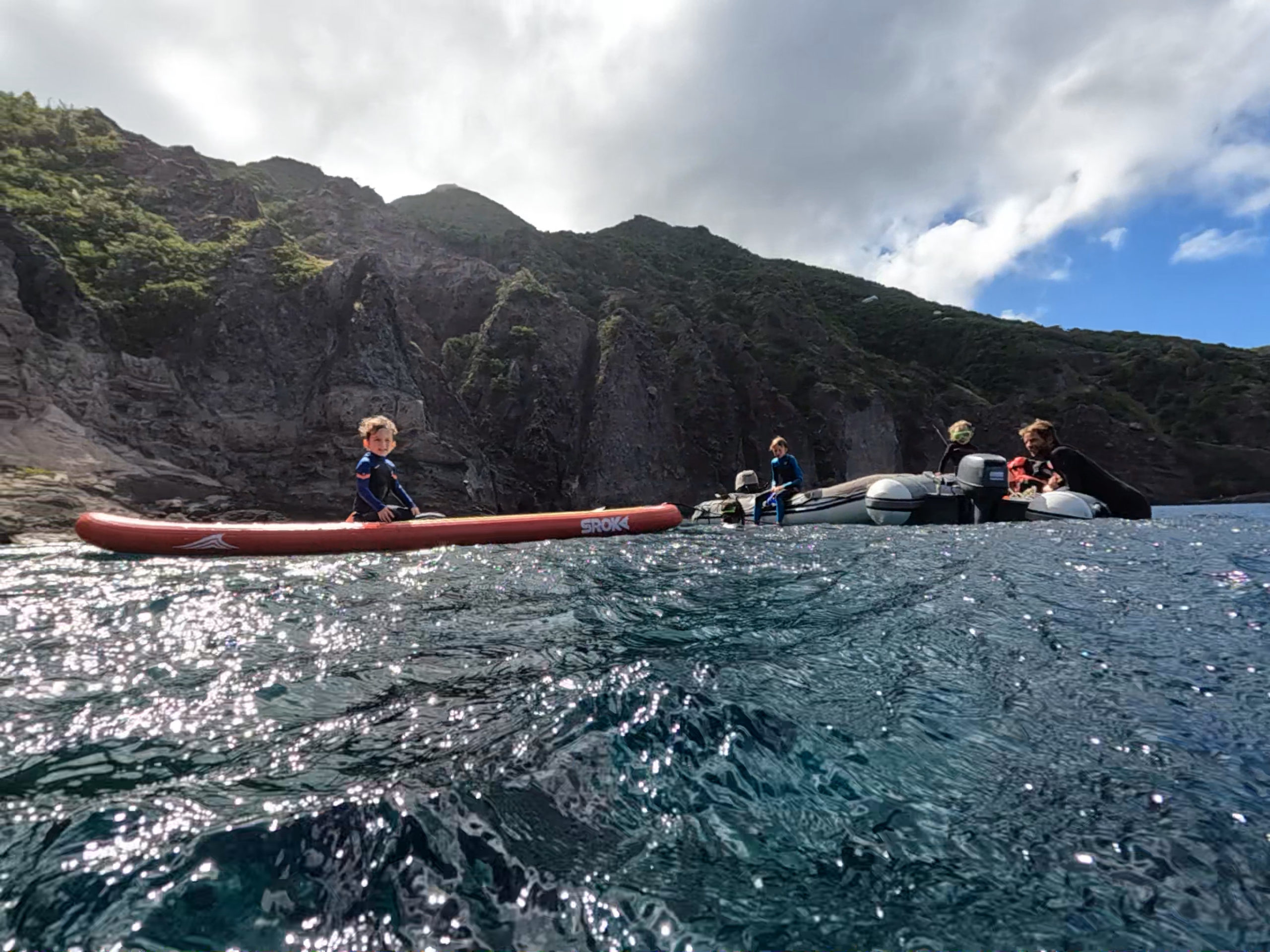 Pour y aller, nous avons dû attendre une météo favorable. Une fenêtre s’est ouverte mi-mars : 3 jours sans (trop) de houle et un vent raisonnable. Nous sommes partis donc avec nos amis les Gouesnard récemment rencontrés sur la route (bateau Aria) qui rêvaient, comme nous, d’un décor sauvage, de grimpes et d’apnées colorées. Nous n’avons pas été déçus.