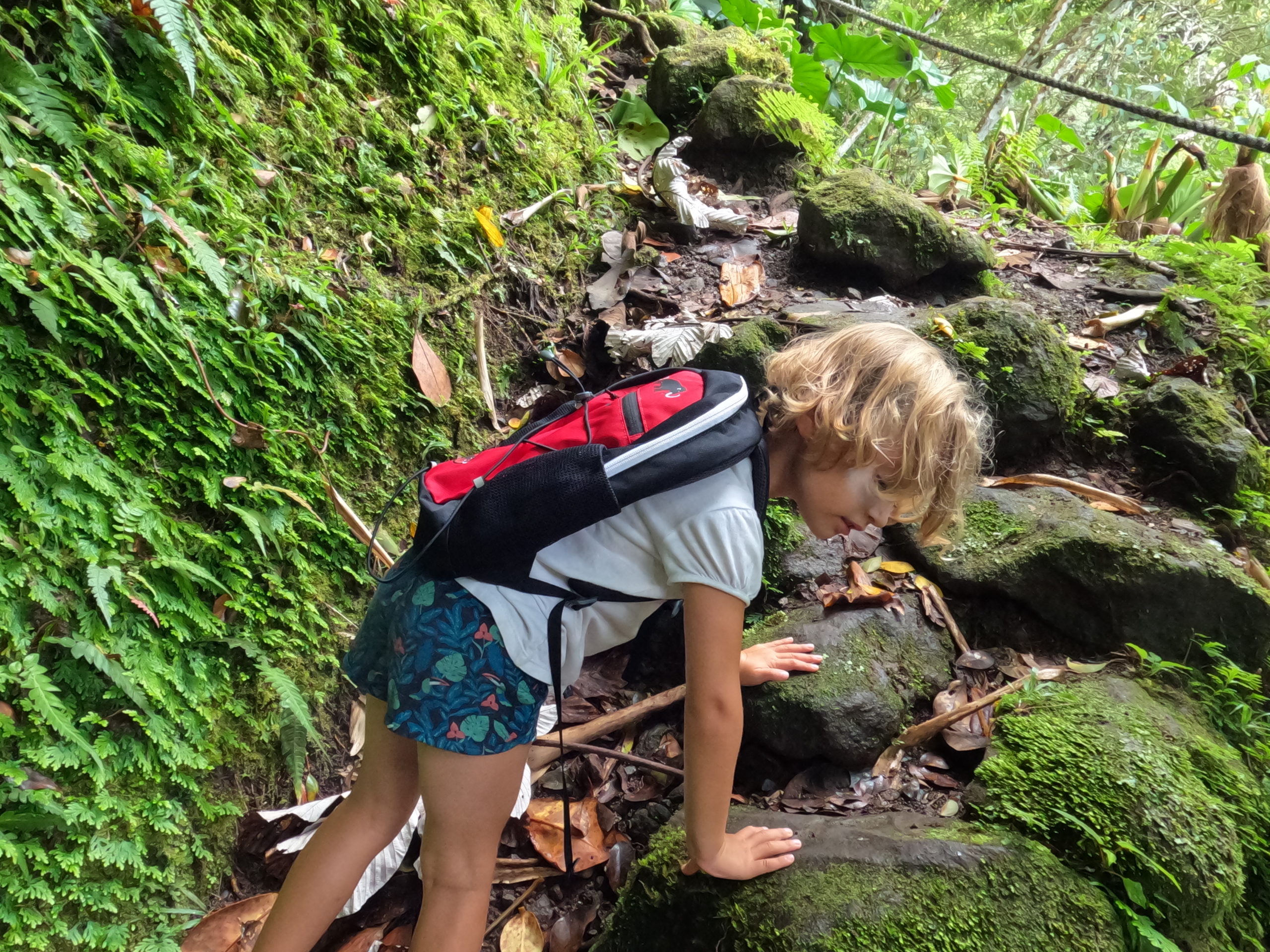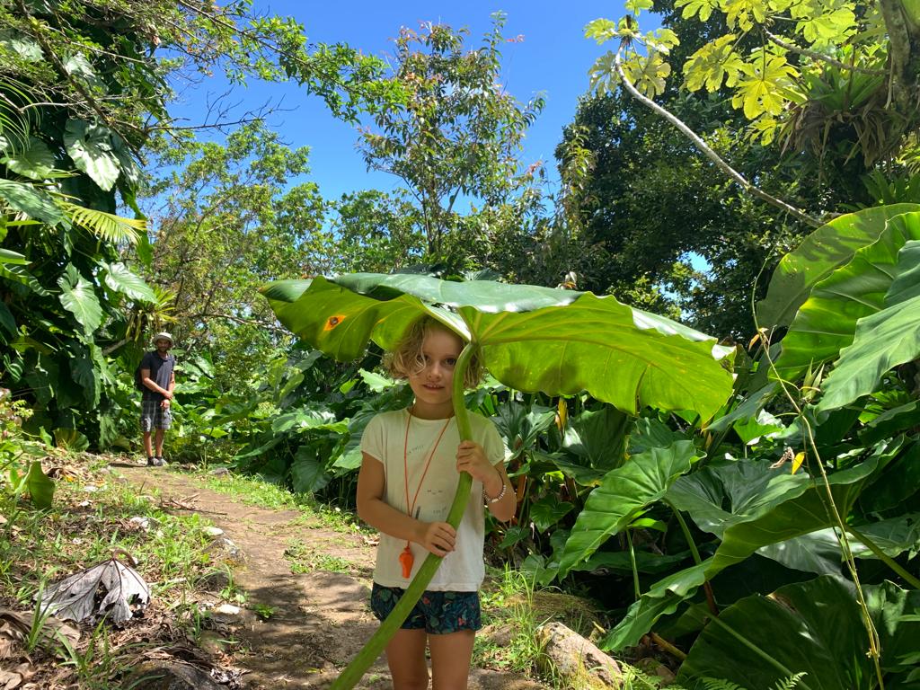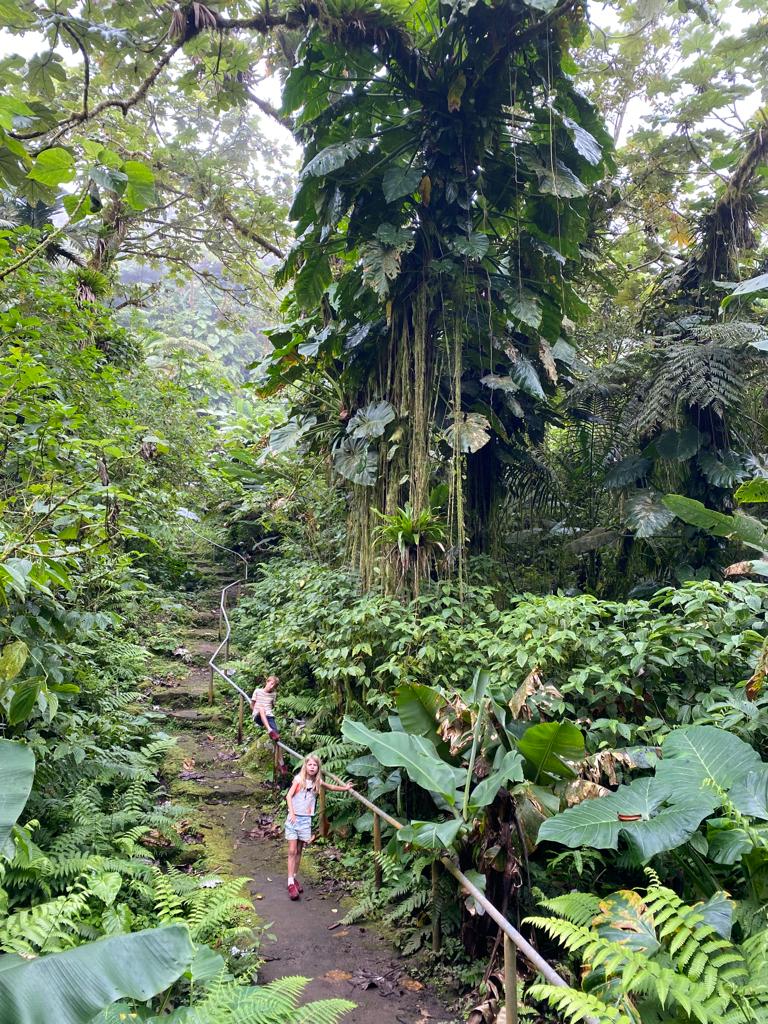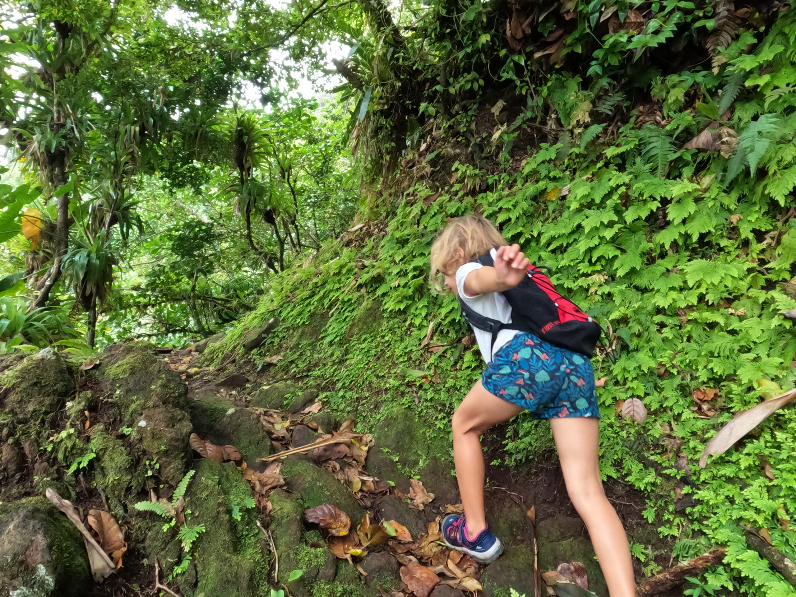 Le lendemain, nous avons choisi une randonnée au coeur de la jungle. 3 heures à marcher dans un décor chatoyant, avec une sensation d’un parcours sans fin. Comptines, chansons et blagues ont permis de motiver nos filles jusqu’au bout ; leurs petits mollets n’ont presque pas flanché et quelle fierté à l’arrivée !
