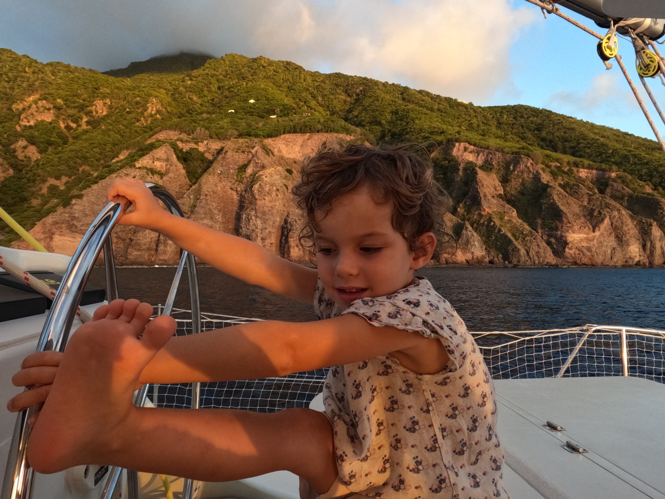 Nous rêvions d’arpenter Saba, The Unspoiled Queen (aka, la reine non préservée). Le premier jour, nous avons donc pu grimper avec nos enfants les 877 m de dénivelé de Saba. Parce que les habitants de Saba ne pouvaient pas construire de route, ils ont fait un escalier surprenant en pierre qui casse des cuisses : trouver des marches tout au long d’une grimpe n’est pas commun !