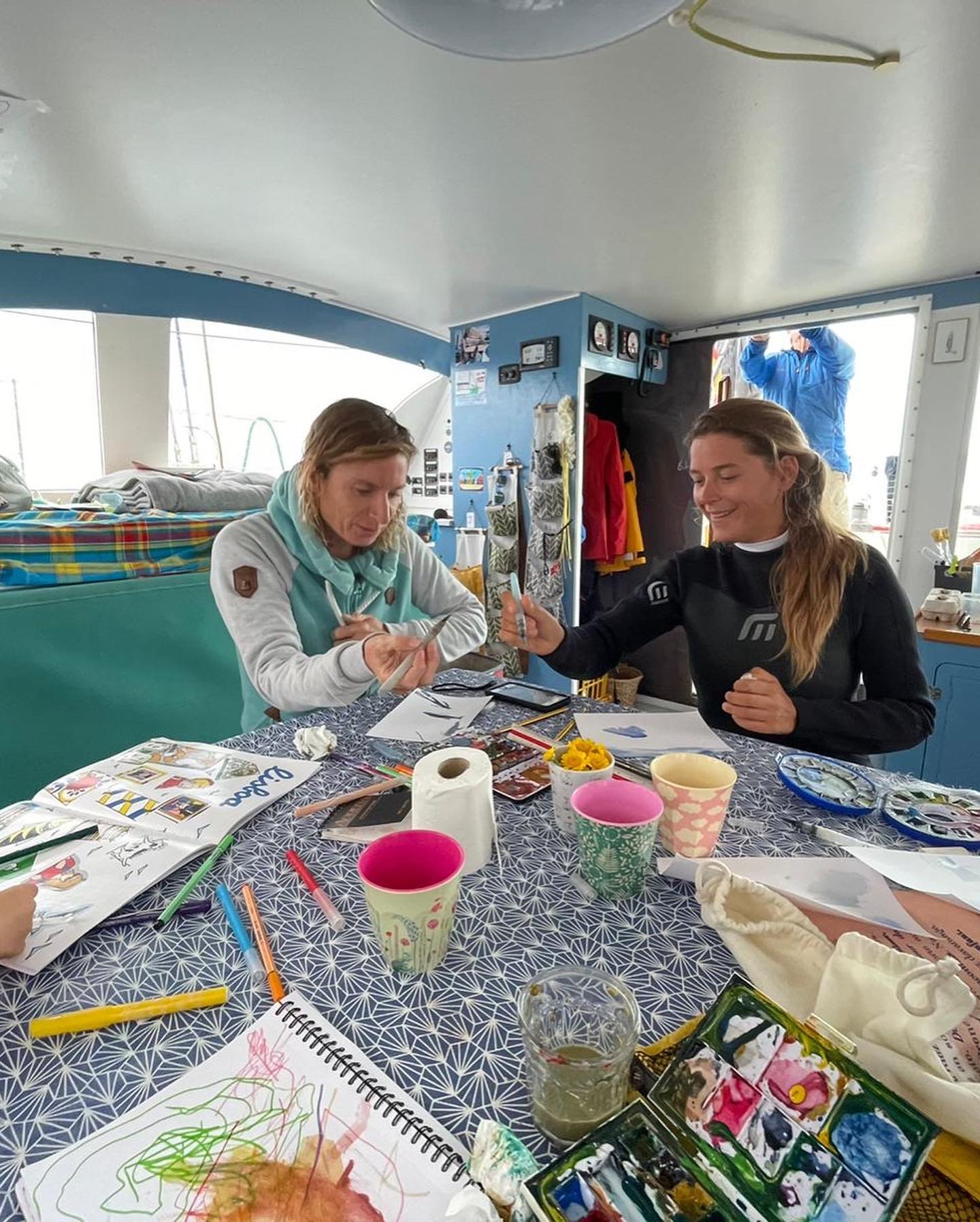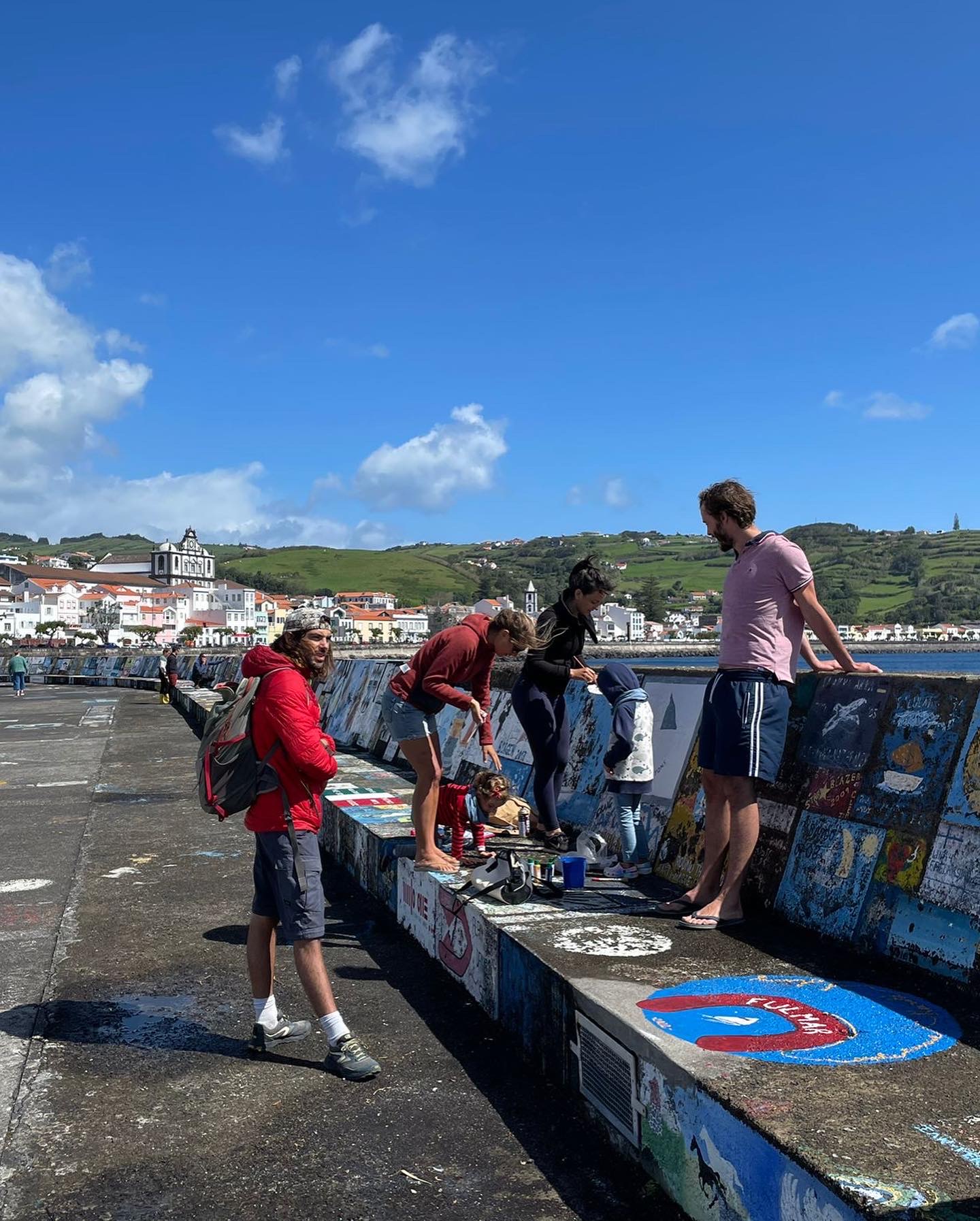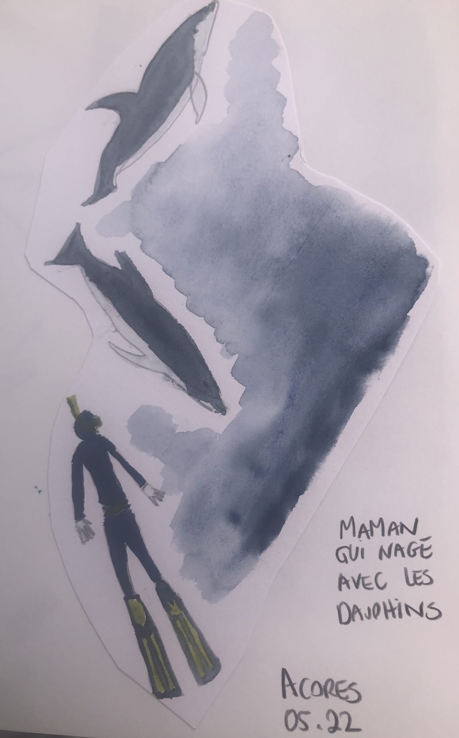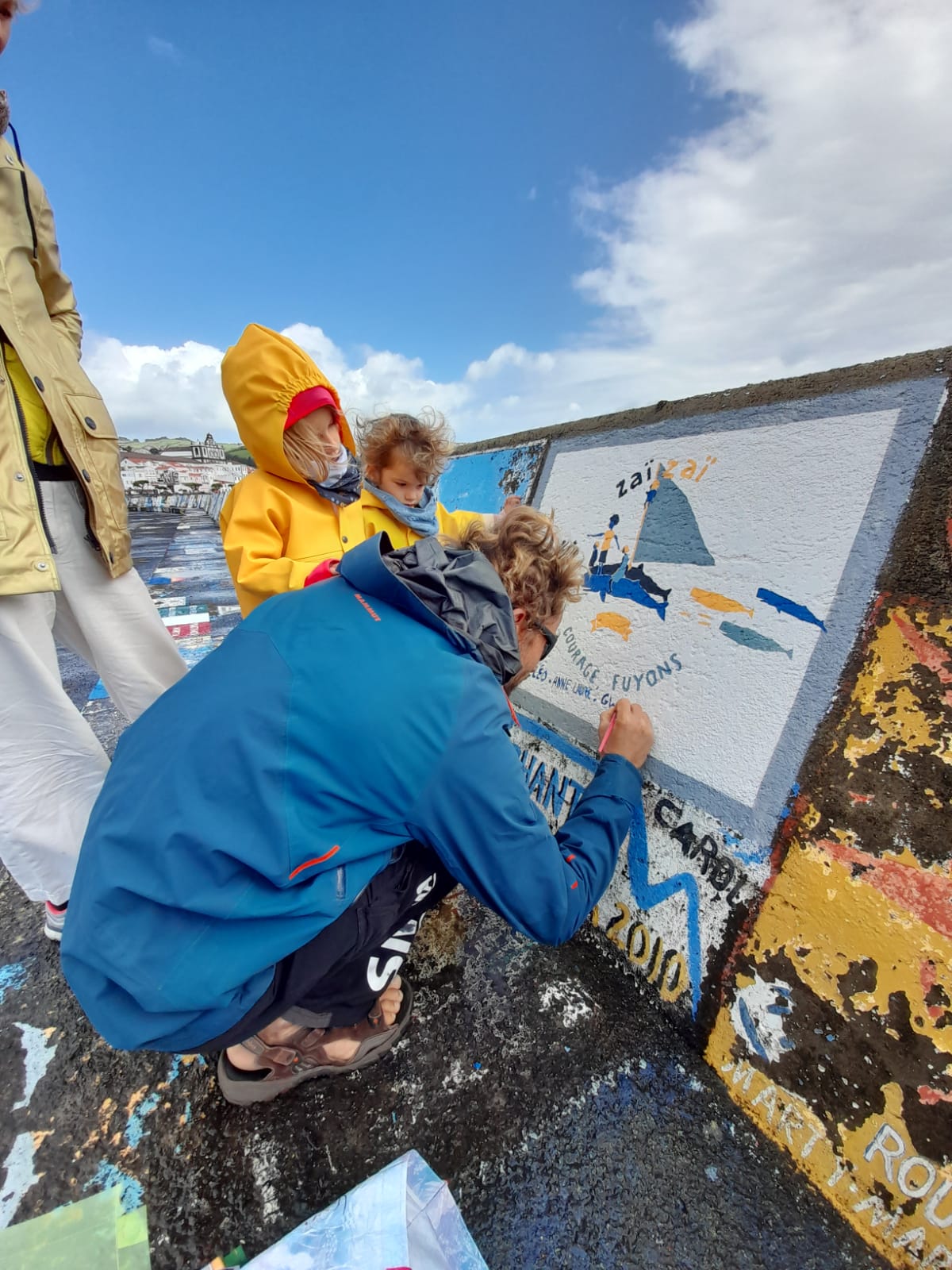 Une fois arrivés en Bretagne, nous aurons le temps de vous raconter cette superbe escale, probablement via un épisode du podcast. En attendant, voici quelques images des dessins réalisés avec Fanny (La Vague Graphique) qui a magnifiquement partagé son art avec nous. Nous avons appris à réaliser un « lavis » en aquarelle ! C’est également elle qui a réalisé le dessin peint à Horta pour laisser une trace joyeuse de notre passage aux Acores.